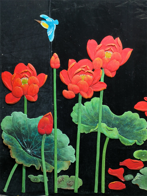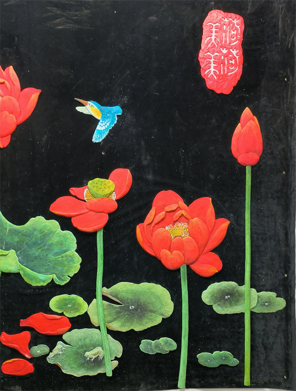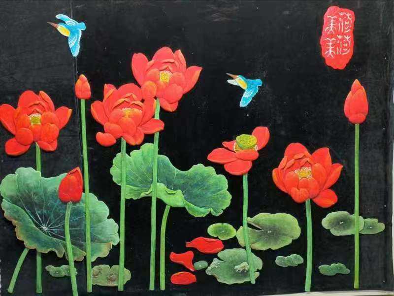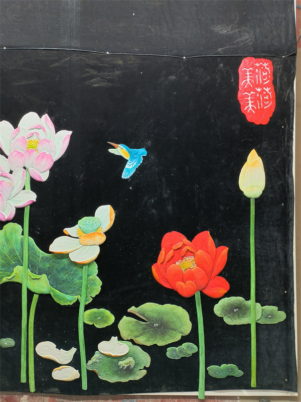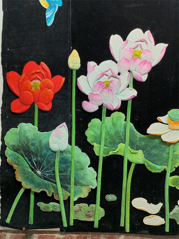 乳胶漆浅浮雕大菏花水平面装贴过画