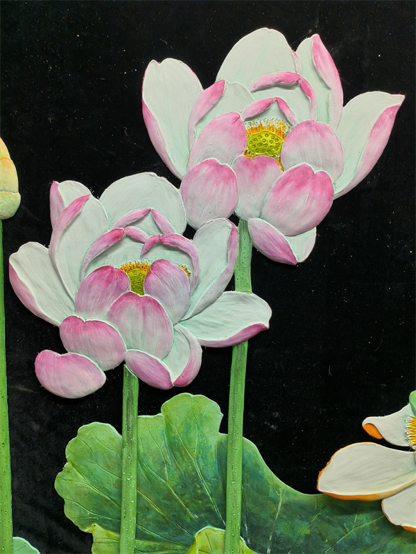 乳胶漆浮雕图案大莲花水平面复制画