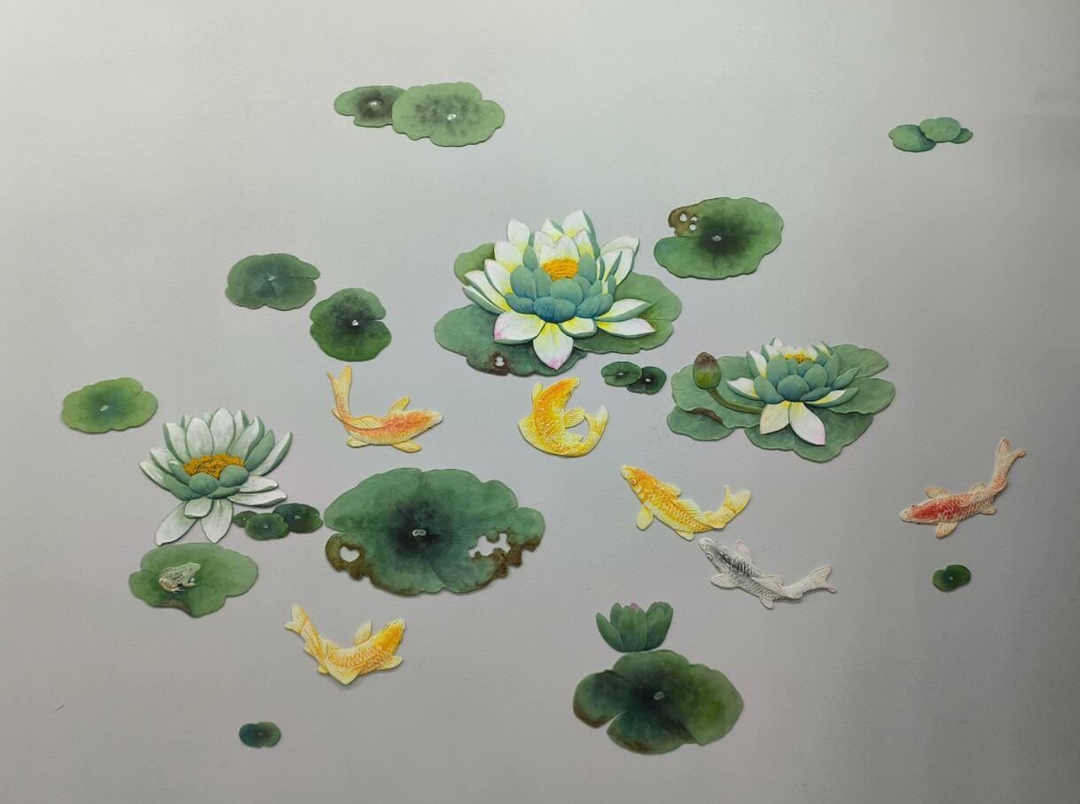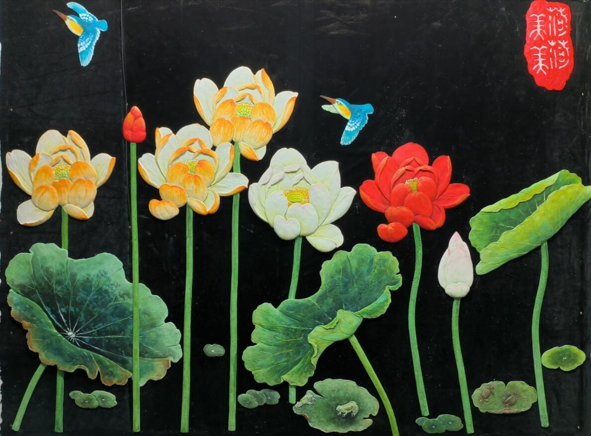 兰舍硅藻泥浮雕制作大白荷花平面设计黏贴画