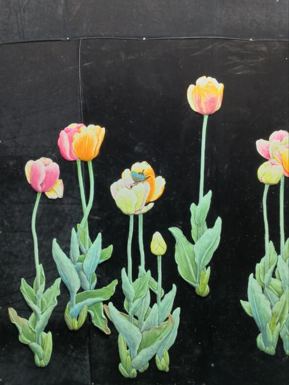 硅澡雕刻大油菜花平面磨复制画